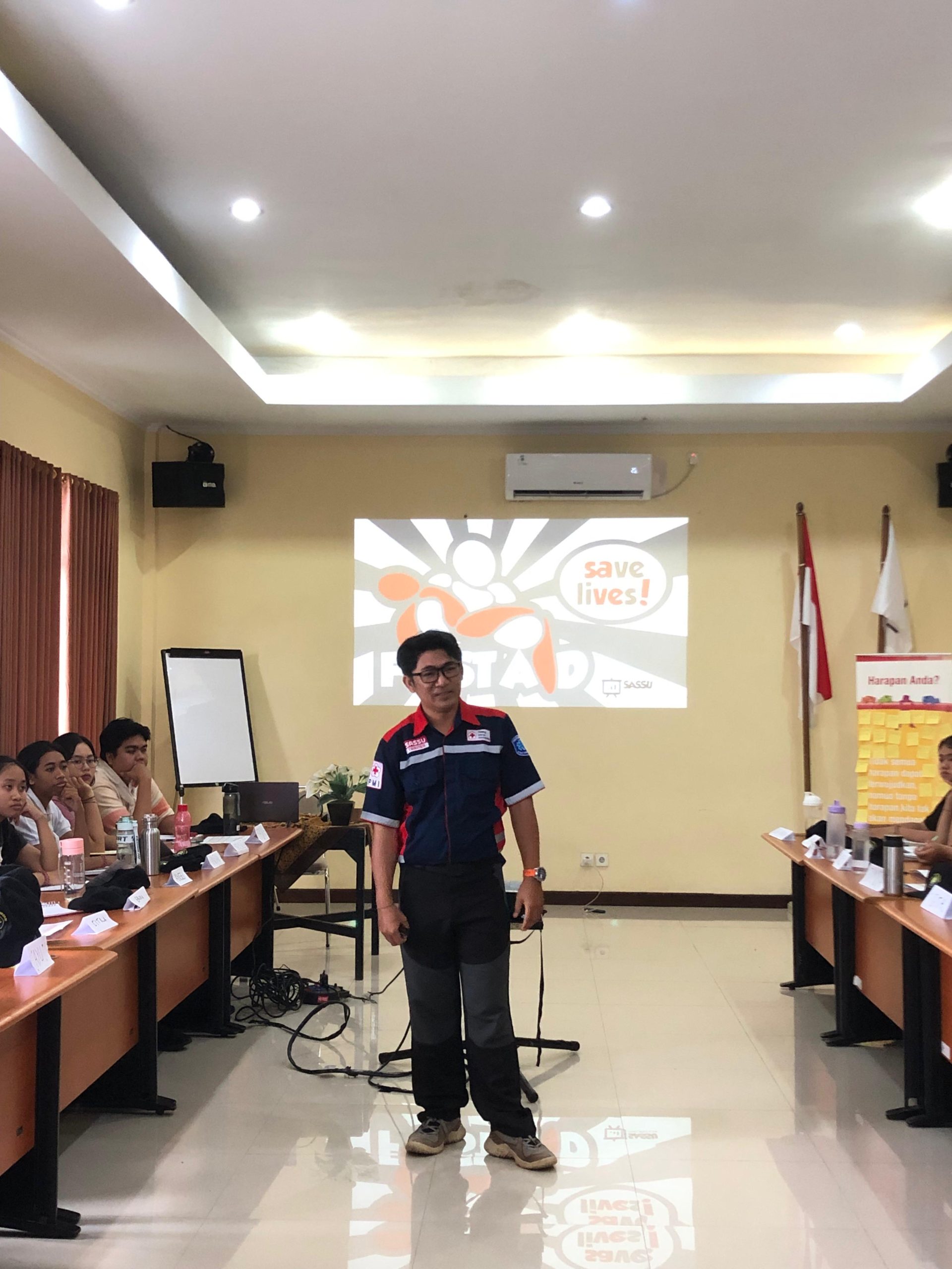 Materi pertolongan pertama disampaikan oleh empat pelatih PMI berpengalaman, yang telah melatih di berbagai wilayah di Indonesia. Mereka memberikan pengetahuan dan keterampilan praktis yang sangat berguna dalam memberikan pertolongan kepada korban kecelakaan atau kondisi darurat. Beberapa topik yang dibahas antara lain prinsip umum pertolongan pertama, penilaian perdarahan dan syok, cedera otot rangka, serta pertolongan pertama pada korban banyak.