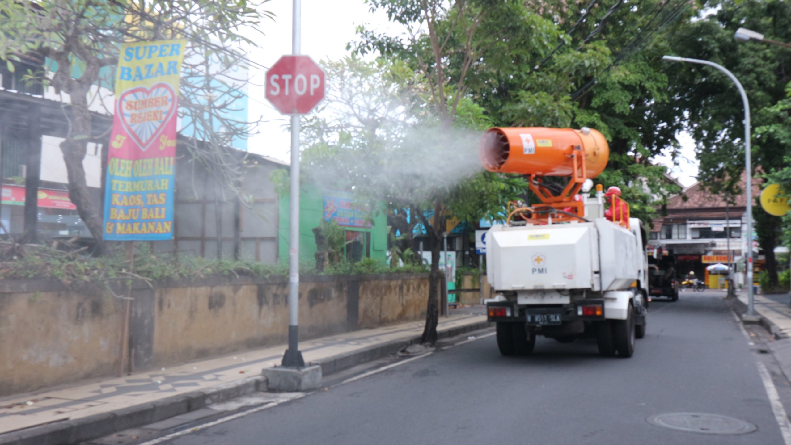 Sebagai upaya penanggulangan pandemi Covid-19, PMI Kabupaten Badung didukung oleh PMI Provinsi Bali melaksanakan giat respon Covid-19 di Kecamatan Kuta, Kamis (28/05/2020). Kegiatan kali ini berupa penyemprotan disinfektan yang perdana menggunakan truk semprot disinfektan (truk gunner).